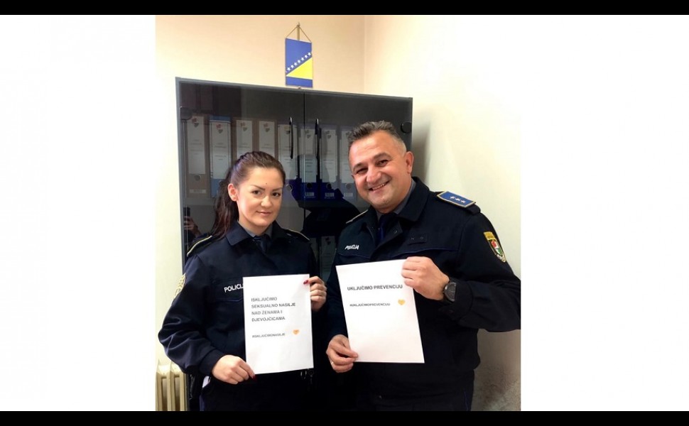 During this global campaign, police officers from police agencies throughout BiH conveyed the messages of this year's campaign "Exclude Sexual Violence Against Women and Girls" and "Include Prevention". The campaign was joined by officials from the BiH Police Coordination Directorate, the State Investigation and Protection Agency, the BiH Border Police, the Federal Police Administration, the Brcko District Police, the FBiH Judicial Police and seven cantonal ministries of interior.